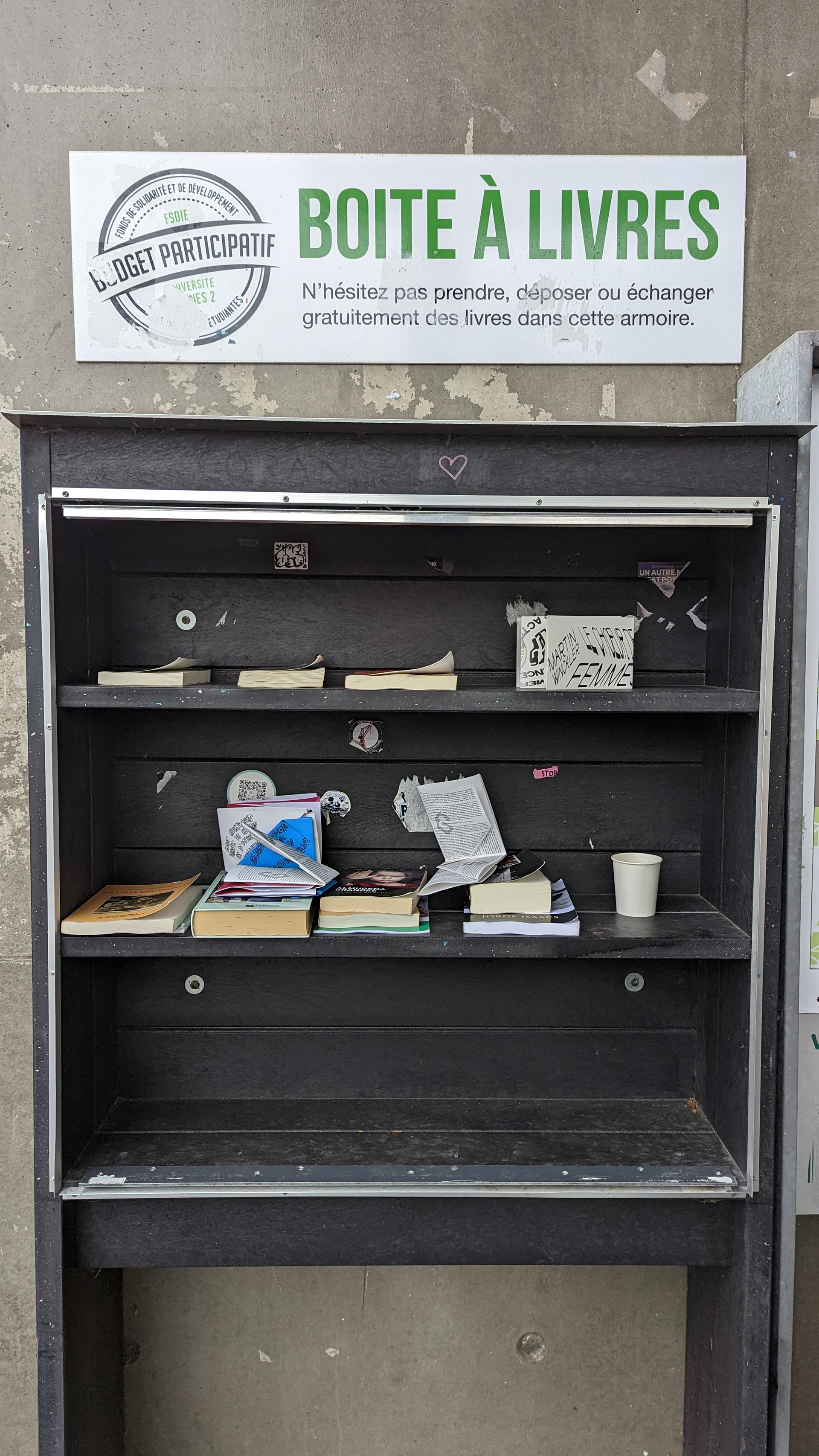 Nous avons ensuite disposé ces travaux dans différents endroits de l'université Rennes 2 afin que les étudiants puissent les lire et les observer.